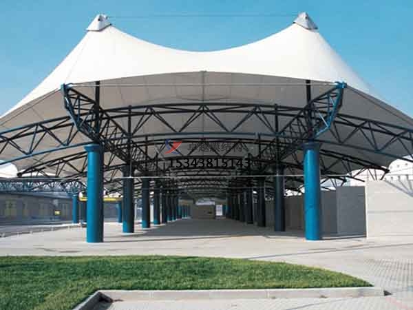 膜結構雨棚是一種全新的建筑結構形式,它集建筑學(xué)、結構力學(xué)、精細化工與材料科學(xué)、計算機技術(shù)等為一體,具有很高技術(shù)含量。其曲面可以隨著(zhù)建筑師的設計需要任意變化,結合整體環(huán)境,建造出標志性的形象工程。