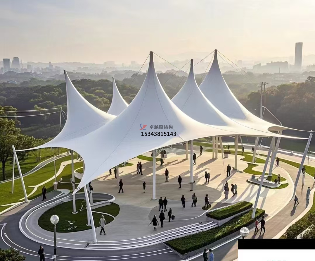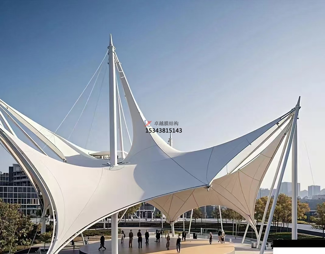 景觀(guān)膜結構在實(shí)用功能上同樣表現出色。其輕盈的材質(zhì)和合理的受力體系使得膜結構能夠跨越較大的空間,形成開(kāi)闊無(wú)阻的幅度,為各種戶(hù)外活動(dòng)提供了理想的場(chǎng)所。同時(shí),膜結構建筑還具有良好的透光性,白天能夠充分利用自然光線(xiàn),降低能耗;夜晚則能透出柔和的燈光,營(yíng)造出夢(mèng)幻般的氛圍。