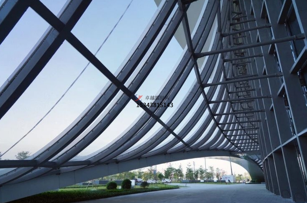 在與單向鋼索垂直的方向設置鋼梁,并在梁和索交叉的位置設置支座以約束鋼索的位移,這種結構形式被稱(chēng)為單層 ETFE 加含跨中支座的單向鋼索結構。通過(guò)設置跨中支座,可以有效地降低膜面的變形,使得膜結構在承受荷載時(shí)能夠保持更好的形態(tài)穩定性。同時(shí),由于支座對鋼索的約束作用,能夠采用較小的索徑,在滿(mǎn)足結構強度要求的前提下,進(jìn)一步降低材料成本。這種結構形式在一些對膜面平整度要求較高的建筑項目中具有獨特的優(yōu)勢,如大型會(huì )議中心的屋頂設計,能夠確保膜面在各種荷載條件下都能保持良好的狀態(tài),為室內提供美觀(guān)、穩定的空間環(huán)境。然而,該結構形式在設計和施工過(guò)程中,需要對支座的布置和連接方式進(jìn)行精心設計,以確保其能夠有效地發(fā)揮約束作用。