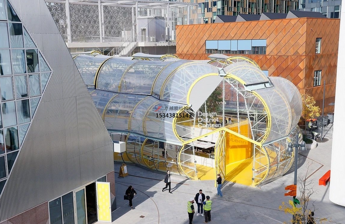 單層 ETFE 結構設計強度相對較低,適用于跨度較小的建筑結構。常見(jiàn)的應用場(chǎng)景是設置于桁架弦桿之間,形成采光帶。這種結構形式能夠充分利用 ETFE 膜材的透光性,為建筑內部引入充足的自然光線(xiàn)。同時(shí),通過(guò)將 ETFE 與 PVC/PTFE 等不同材質(zhì)的膜材組合使用,可以產(chǎn)生更為豐富的視覺(jué)效果,滿(mǎn)足建筑美學(xué)的需求。例如,在一些商業(yè)建筑的中庭設計中,采用單層 ETFE 采光帶,搭配周?chē)?PVC 膜材裝飾,營(yíng)造出獨特的空間氛圍。然而,由于其強度限制,單層 ETFE 結構在大跨度或高荷載的情況下可能無(wú)法滿(mǎn)足設計要求。