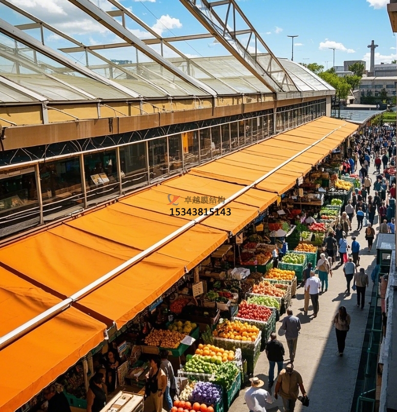 城市中心傳統農貿市場(chǎng)改造:在城市核心區域,土地資源緊張,傳統農貿市場(chǎng)設施陳舊、空間局促。膜結構改造方案通過(guò)拆除原有老舊頂棚,搭建輕巧、美觀(guān)的膜結構頂棚,能在不增加過(guò)多占地面積的情況下,優(yōu)化市場(chǎng)空間,提升采光、通風(fēng)效果,改善購物環(huán)境,同時(shí)保留傳統市場(chǎng)的煙火氣,讓城市記憶與現代功能完美融合,如北京的部分老城區農貿市場(chǎng)改造項目,就借助膜結構實(shí)現了華麗轉身,重新煥發(fā)生機。
