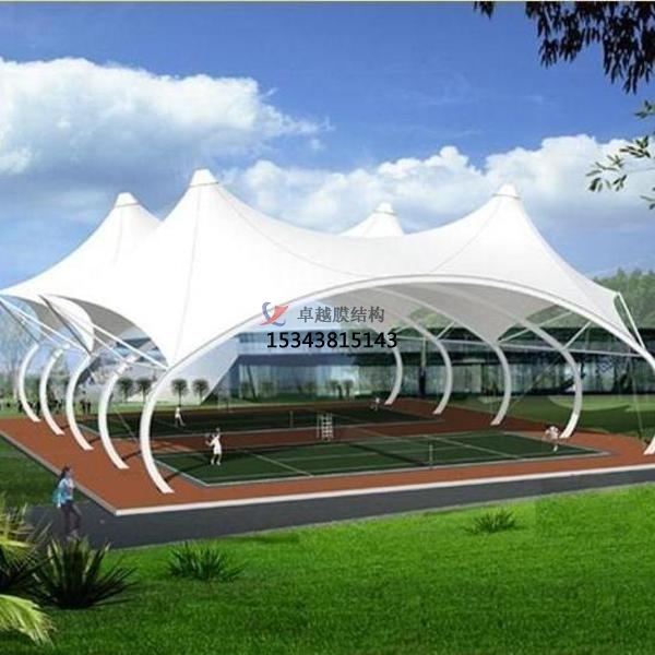 2、膜結構是目前發(fā)展很快的一種新型空間結構,是一種效率極高的張力集成體系,可以充分發(fā)揮鋼索的強度與張拉整體結構的空間作用。它通過(guò)鋼骨架、鋼索與膜材共同受力形式穩定曲面來(lái)覆蓋建筑空間,具有高度的形體可塑性和結構靈活性,即通過(guò)對膜材內部施加一定的預張力,使其具備了抵抗外荷載能力,從而充當結構材料的一種結構體系。我公司先后在阿勒泰地區承接球場(chǎng)頂棚罩棚設計施工案例,簡(jiǎn)介如下: