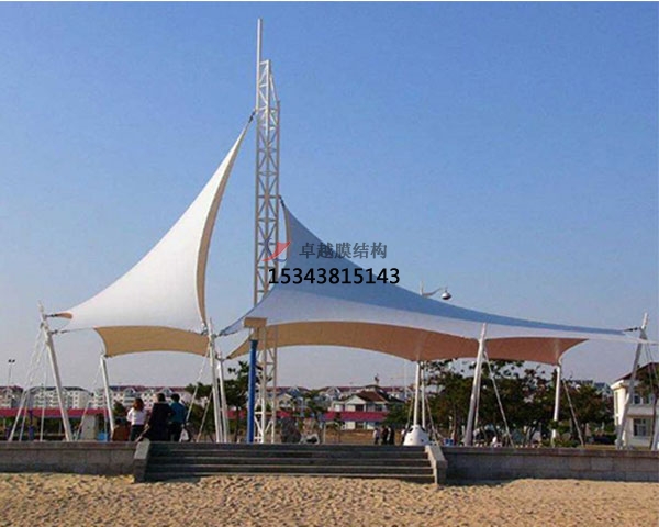 景觀(guān)膜結構遮陽(yáng)棚,是以建筑織物,即膜資料為張拉主體,與支撐構件或拉索共同組成的結構體系,它以其新穎共同的建筑造型,杰出的受力特色——成為大跨度空間結構的很好的要形式之一。膜資料是指聚酯纖維基布或PVDF、PVF、PTFE等不同的外表涂層,配以?xún)?yōu)質(zhì)的PVC組成的具有穩定的形狀,并可承受必定載荷的建筑紡織品。它的壽命因不同的外表涂層而異,一般可達到10-20年。