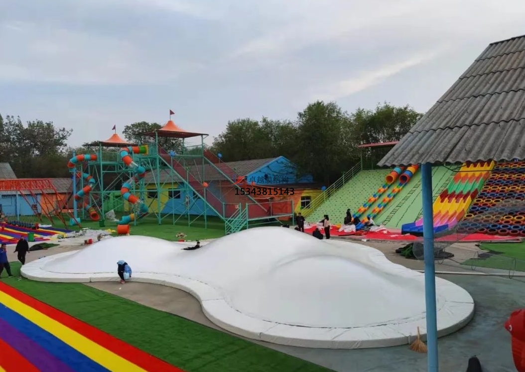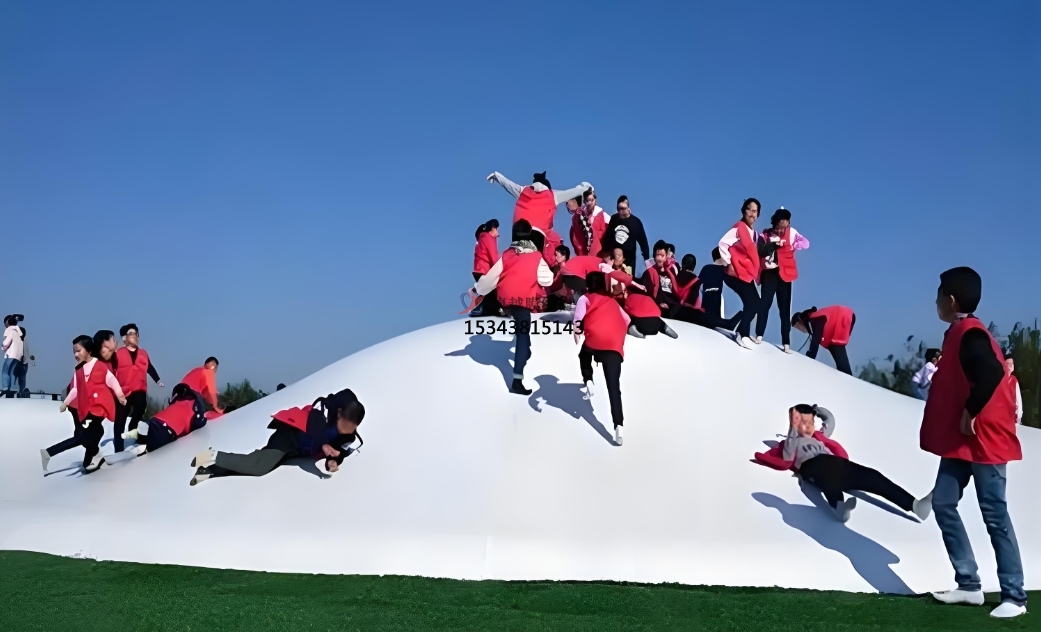 蹦蹦云的設計高度靈活,可根據場(chǎng)地環(huán)境定制形態(tài)與規模。無(wú)論是平坦空地還是起伏地形,均可通過(guò)設置沙坑、坡度或洞穴,塑造自然野趣的游樂(lè )場(chǎng)景。其純白外觀(guān)與云朵造型,既能融入景區生態(tài)景觀(guān),也可作為商業(yè)地產(chǎn)的網(wǎng)紅打卡點(diǎn)。從親子樂(lè )園到度假村,從生態(tài)農莊到特色小鎮,蹦蹦云以 “可蹦、可滑、可躺” 的多維體驗,滿(mǎn)足全年齡段游客的互動(dòng)需求。
