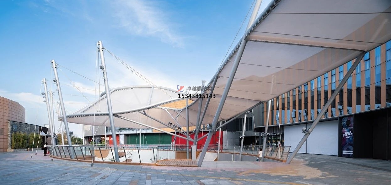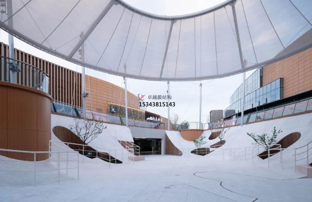 但不管怎么有格調的下沉式商業(yè)。廣場(chǎng),它也是一個(gè)半露天的公共空間,如果缺乏遮陽(yáng)避雨設施,無(wú)法提供更加舒適的休閑環(huán)境,因此,在下沉廣場(chǎng)上方增設頂蓋是非常必要的,而且一個(gè)兼具美觀(guān)、時(shí)尚、實(shí)用的頂蓋也是建筑的加分項。