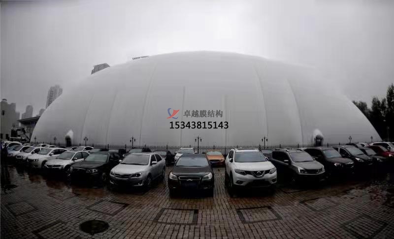 充氣膜膜材由聚酯纖維基布外加表面環(huán)涂層組成,具有抗老化、抗腐蝕、防紫外線(xiàn)、自潔性等優(yōu)越性能,氣膜外部鋼網(wǎng)索由鍍鋅鋼絲繩加PE防銹保護層制作而成,具有良好的抗銹蝕性能。