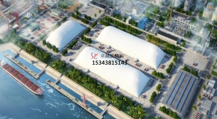 目前我國年吞吐量在1000萬(wàn)噸以上的沿海港口和200萬(wàn)噸以上的內河港口占全國港口的1/3。而港口發(fā)展中所用到的煤炭、物料、煤矸石、煤堆、水泥白灰等生產(chǎn)原料造成的揚塵污染,給當地生態(tài)及居住環(huán)境造成了嚴重破壞。而全封閉氣膜倉儲結構在港口碼頭堆場(chǎng)中的應用,不但能有效幫助港口企業(yè)實(shí)現環(huán)保與經(jīng)濟并存的雙贏(yíng)局面,還將促成我國港口形成綠色生態(tài)新發(fā)展格局。