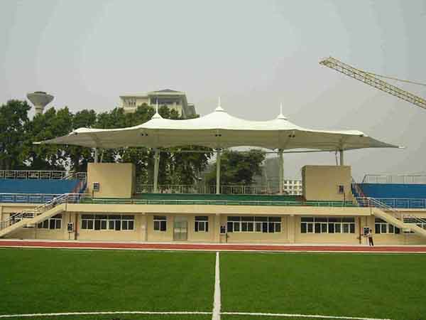張拉膜看臺主要用于各類(lèi)地方體育場(chǎng)主席臺雨棚,各類(lèi)學(xué)校體育場(chǎng)看臺雨棚遮蓋,我公司是國內較早從事大懸挑張拉膜結構看臺設計施工的專(zhuān)業(yè)廠(chǎng)家,下面介紹一下我們在金華市周邊縣市完工的一些張拉膜看臺設計施工案例,我公司先后在金華周邊承接了金華職業(yè)技術(shù)學(xué)院張拉膜看臺雨棚、浙江師范大學(xué)張拉膜看臺罩棚、浙江橫店影視職業(yè)學(xué)院張拉膜看臺遮陽(yáng)棚等設計施工項目,簡(jiǎn)介如下: