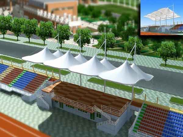 1、江西清林專(zhuān)修學(xué)院張拉膜看臺雨棚
