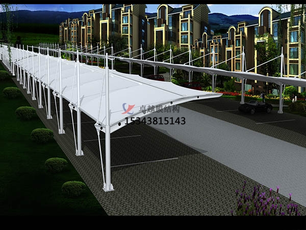 膜結構雨棚是一種全新的建筑結構形式,它集建筑學(xué)、結構力學(xué)、精細化工與材料科學(xué)、計算機技術(shù)等為一體,具有很高技術(shù)含量。其曲面可以隨著(zhù)建筑師的設計需要任意變化,結合整體環(huán)境,建造出標志性的形象工程。