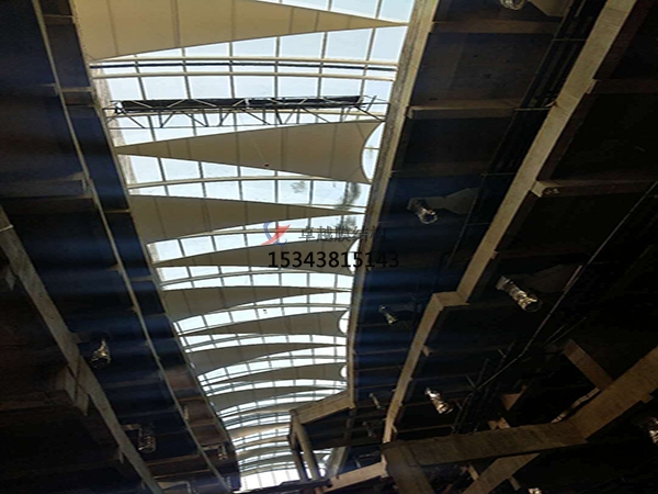 2)骨架式膜結構。骨架的支撐就在于拉膜材下方的屋頂骨架,主要由鋼材或者集成材構成,造型上比較單純但是經(jīng)濟效益比較高,適用于任何空間。