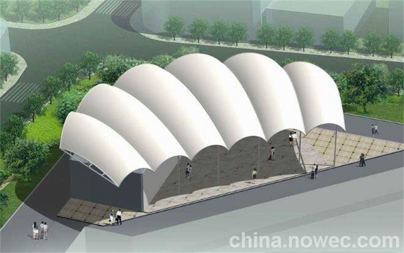 小型景觀(guān)膜結構建筑無(wú)需考慮消防防火設計,但大型公共膜結構建筑必須明確防火設計思想。針對膜結構建筑的特點(diǎn),必須明確選用膜結構材料的防火等級。 當膜材距離樓面、地面約6.0m以上時(shí),膜結構材料的防火可不要求。封閉膜結構建筑空間可采用自動(dòng)噴淋系統。由于膜結構建筑的大跨、無(wú)構件支承空間大,噴淋系統難以滿(mǎn)足規范平面距離、高度要求。膜結構建筑支承體系的防火應根據膜結構建筑總體設計做出明確要求,在距離地面3m高程以?xún)戎С袠嫾ㄤ摻Y構構件、木構件、鋁構件等)必須防火,給出防火做法和耐火時(shí)間。3m高以上支承構件可不要求或做低一級的防火要求。