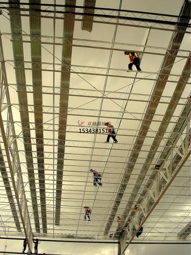 膜結構的固定螺栓,鋼索,及附屬配件等,會(huì )出現銹蝕,松動(dòng),脫落等現象,在膜結構完工后要進(jìn)行定期的檢查,發(fā)現鋼構有輕微的銹蝕現象要及時(shí)處理,除去銹蝕層,重新做面漆,螺栓銹蝕要更換,膜結構為柔性結構,剛度小,自振頻率低。受到外部的風(fēng)荷載時(shí),會(huì )發(fā)生大的變形,膜膠板的受力較大,力量較集中,桿件連接件容易損壞,脫落。發(fā)現問(wèn)題要及時(shí)的更換維修,以免造成更大的損失。