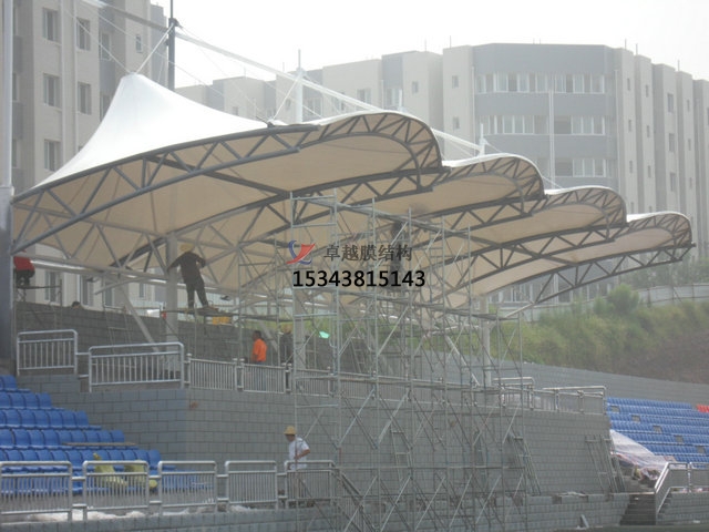 膜結構完工后,需定期進(jìn)行維護檢查工作,定期檢查支承結構,鋼索,螺栓等處的腐蝕情況。 腐蝕發(fā)生輕微的情況,可先除去腐蝕層,然后重新做好表面的防腐處理。螺栓連接發(fā)生腐蝕,應予 以更換。膜結構為柔性結構,剛度小,自振頻率低,在外來(lái)風(fēng)荷載下易發(fā)生大的變形并伴隨著(zhù)振動(dòng) 現象。