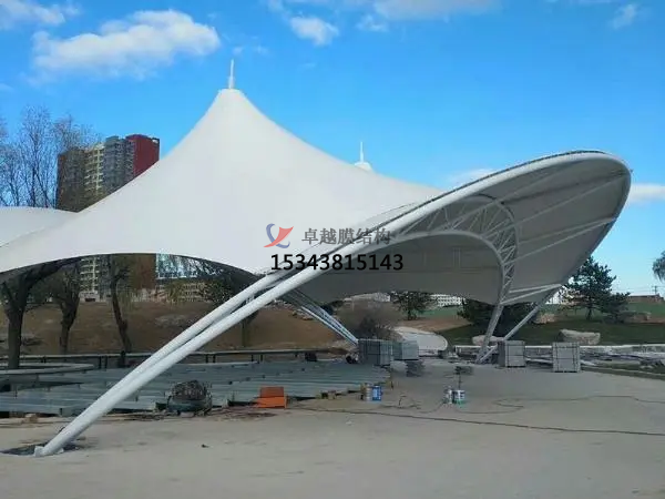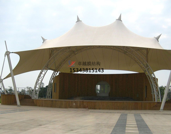 5.抵御天氣的影響:舞臺膜屋面的一個(gè)重要作用就是抵御各種天氣變化(如日曬、雨淋、風(fēng)雪等)對其內部空間的影響,保持建筑物內部的舒適性。選擇膜面的形態(tài)和材料時(shí)要考慮到所有可能的天氣狀況,并盡可能利用建筑本身等被動(dòng)方法來(lái)減少能量的消耗。