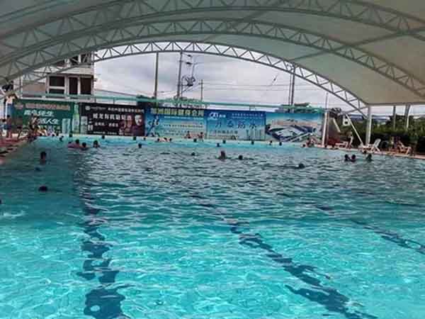 游泳館的外立面及屋頂材料的選擇以質(zhì)輕,透明,遮陽(yáng)和可滿(mǎn)足大跨度建造的能力為標準。因此,游泳館采用具有高性能的PTFE膜材作為游泳館的采光屋頂,PTFE膜材能通過(guò)內外表面的均勻透光,就形成了柔和的散射光線(xiàn),使建筑沐浴在溫暖、散漫的自然光下??烧{節的窗戶(hù)幫助室內自然通風(fēng),有效減少了對空調的依賴(lài)。