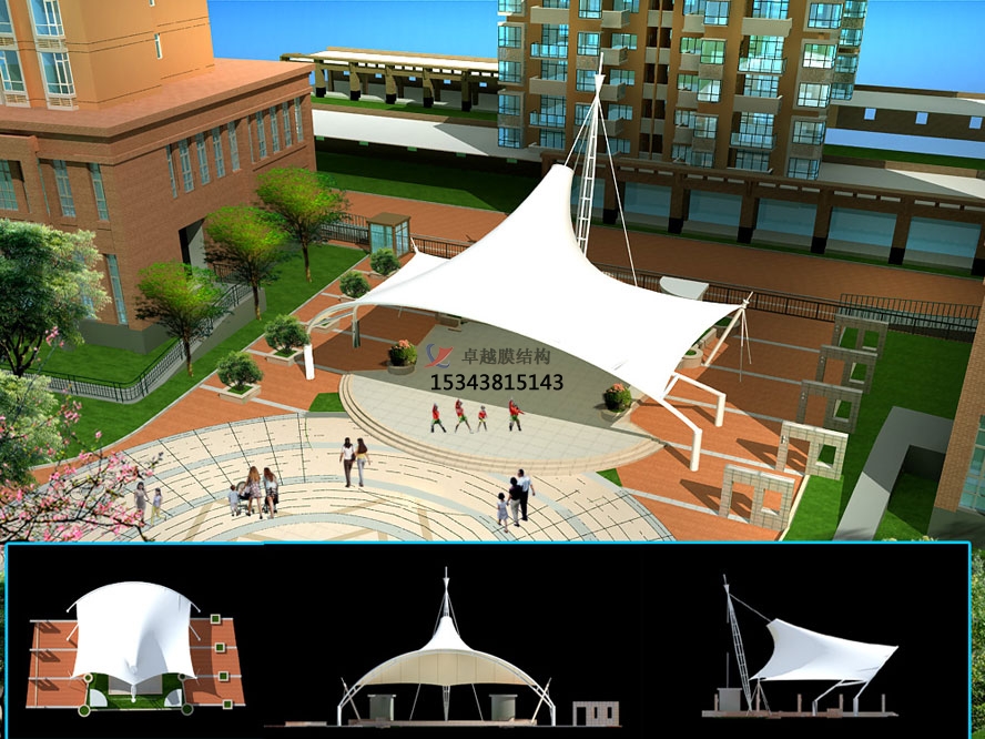 膜結構高爾夫發(fā)球臺遮陽(yáng)棚效果圖