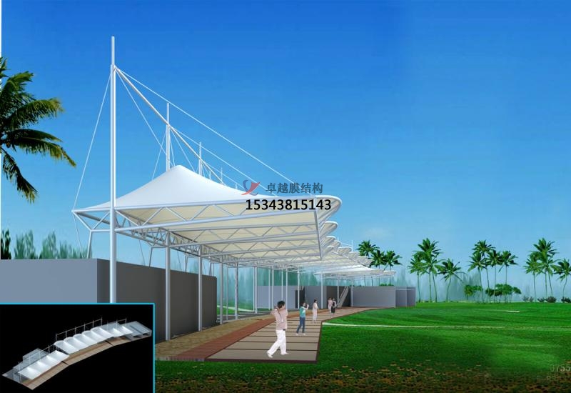 膜結構高爾夫發(fā)球臺遮陽(yáng)棚效果圖