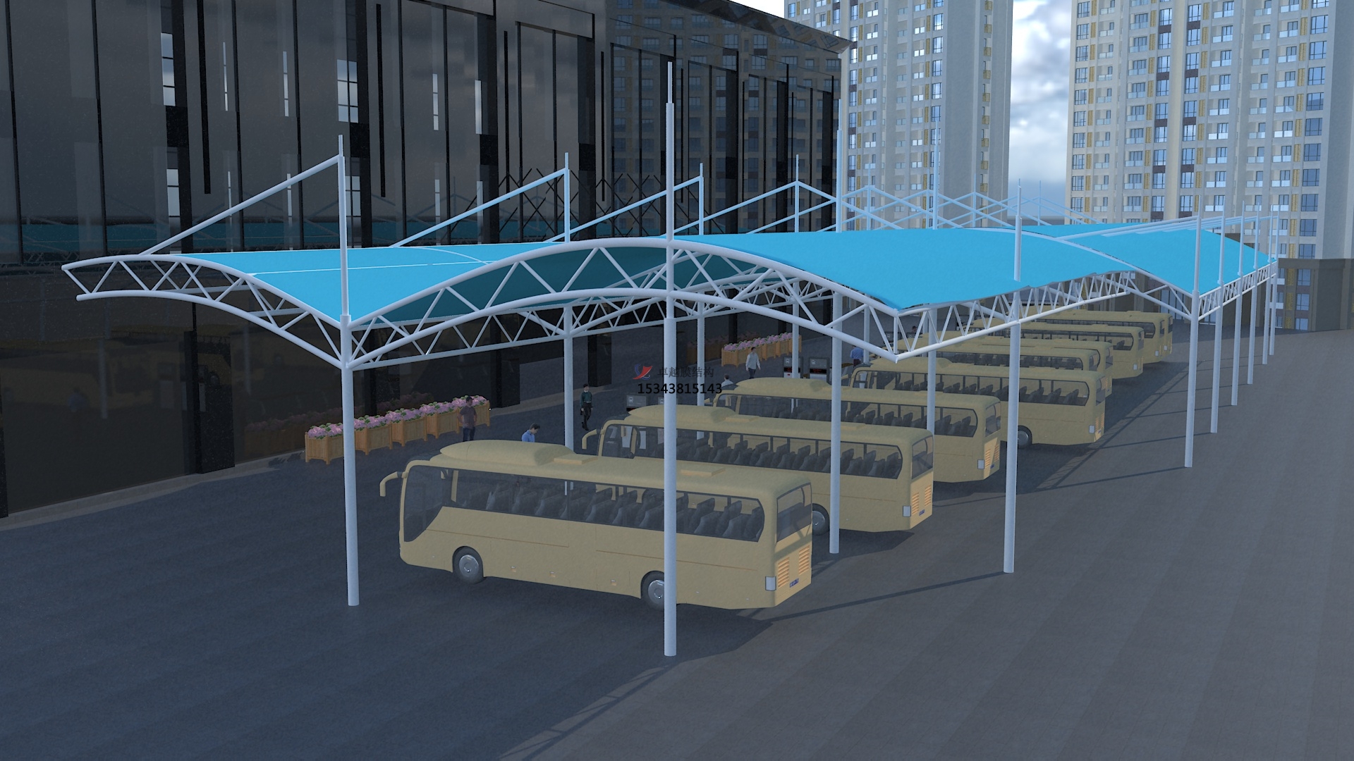 公交大巴膜結構停車(chē)棚效果圖