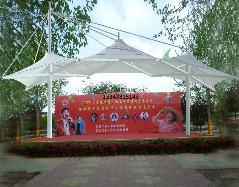 近年來(lái),隨著(zhù)建筑空間觀(guān)念的日益深化以及科學(xué)手段的不斷提高,膜結構已是現代建筑環(huán)境學(xué)發(fā)展的主流。它可以構成單曲面,多曲面等不同建筑結構形式,滿(mǎn)足了建筑師們對建筑與美學(xué)高度統一的要求。 由于膜材的光透性,白天陽(yáng)光可以透過(guò)膜材形成漫射光,使舞臺下如同自然,能很好地節約能源。夜間彩燈打射形成的絢爛景觀(guān)也讓市民體驗到不一樣的感覺(jué)。膜材具有防水 性和遮陽(yáng)效果,而不受到日曬雨淋,因此膜結構舞臺能創(chuàng )造出與自然環(huán)境相媲美的空間形式。