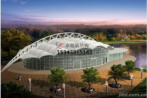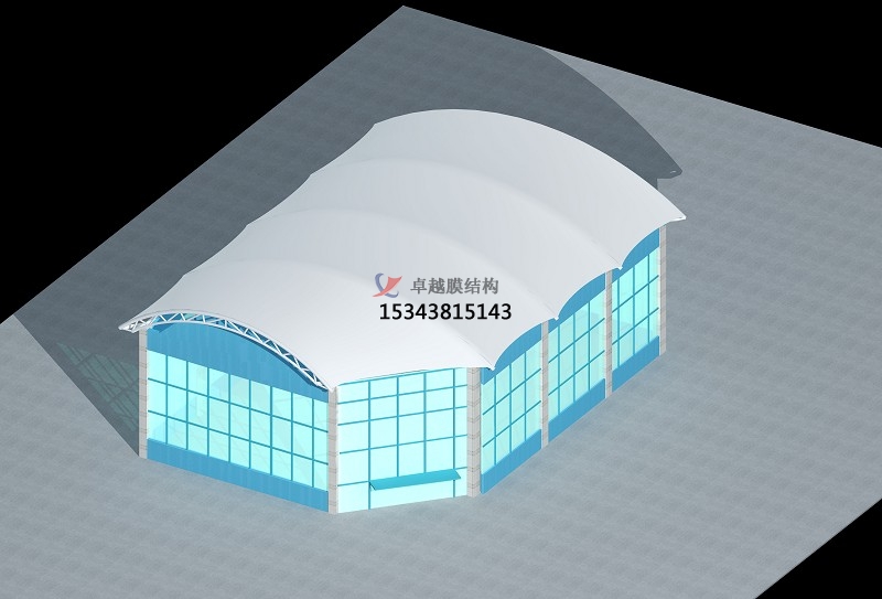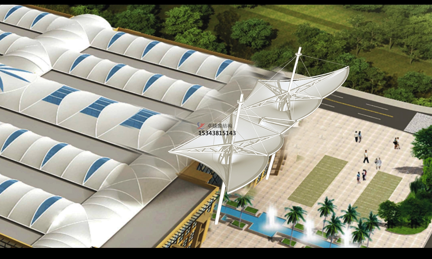 采用膜結構屋頂的好處是具有良好的環(huán)保性、透光性、自清潔性,膜材表面采用PVDF(聚偏二氟乙烯)涂層、或二氧化鈦涂層,具有較好的隔熱效果,透光率好等特性。