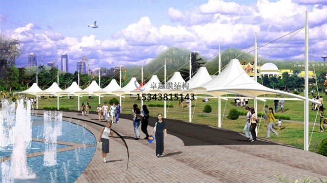 2、一個(gè)城市的中心區反映一個(gè)城市的地理風(fēng)貌和民族風(fēng)情,同時(shí),也是一個(gè)城市文化發(fā)展程度的標志。而景觀(guān)設計要求其具有廣泛的可讀性、雅俗共賞,既有超凡脫俗的藝術(shù)價(jià)值,又能使大眾喜聞樂(lè )見(jiàn)與大眾息息相通。張拉膜以其輕盈飄逸的造型、柔美并帶有力量的曲線(xiàn)和大跨度和大空間的鮮明個(gè)性和標識性,應用于城市小品設計中。