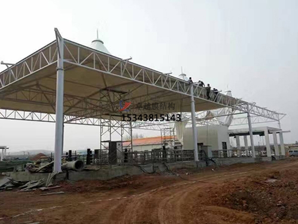 膜結構屋頂,自重輕,具有良好的受力特點(diǎn)——成為大跨度空間結構的主要形式之一。停車(chē)場(chǎng)的規劃和建設成為現代城市規劃的重要組成部分,變的越來(lái)越重要。膜結構輕巧、別致的造型在停車(chē)場(chǎng)及候車(chē)廳的建設中擔當了重要角色,除了滿(mǎn)足防風(fēng)雨、防日曬等基本功能外,并有較好的標識招攬效果,展現了人們個(gè)性化的一面。