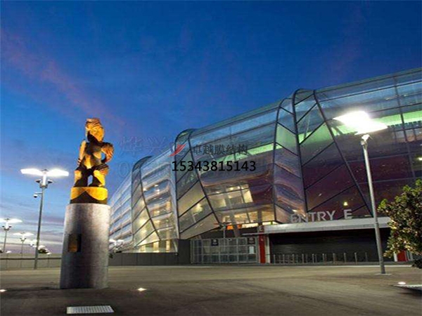 場(chǎng)館看臺膜結構材料特性與選擇:其材料具有高透光性與自潔功能、耐久性保障。材料采用ETFE膜(0.25毫米厚)或PTFE涂層玻璃纖維膜,透光率可達40%-60%,減少人工照明依賴(lài),同時(shí)表面防護涂層使雨水沖刷即可保持清潔。部分場(chǎng)館使用PVC材料,兼具抗紫外線(xiàn)、阻燃及耐候性,適用于多種氣候環(huán)境。通過(guò)抗風(fēng)壓、抗雪荷載及防火測試,并結合鋼索網(wǎng)或鋼結構框架提升穩定性。材料選擇注重環(huán)保性,如ETFE膜可回收,符合綠色建筑趨勢。