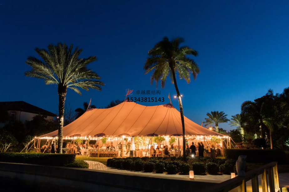 膜結構婚禮篷房,時(shí)尚潮流又溫馨浪漫,是目前流行的婚禮宴會(huì )場(chǎng)地解決方案。