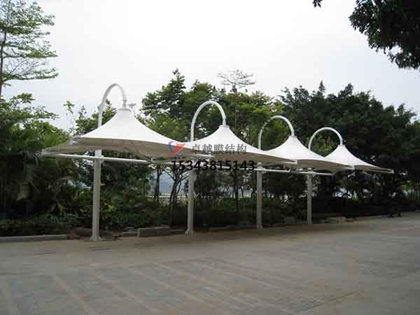 項目結構形式:四周軟邊骨架式膜結構景觀(guān)小品