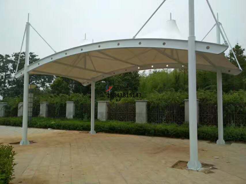 項目結構形式:四周軟邊骨架式膜結構景觀(guān)小品