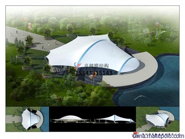 我司根據環(huán)境及應用場(chǎng)合的不同,把選好的“面料”(膜材)按尺寸裁剪,設計出各種獨特的建筑款式,再與“輔料”(加強構件,如鋼架、鋼柱或鋼索)結合通過(guò)一定方式使其內部產(chǎn)生一定的預張應力以形成某種空間。