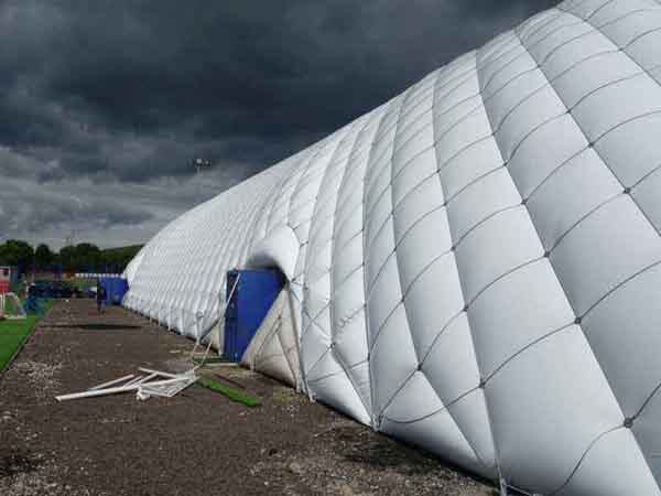空間,并在氣膜表面形成巨大的張力。即使有漏風(fēng),也不會(huì )倒塌。氣膜樓上層建筑離地面約需30分鐘,距離地面約2米,且有足夠的時(shí)間確保氣膜貯