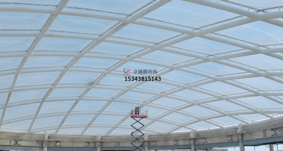 膜工程中所有加工和制作依設計均可在工廠(chǎng)內完成,在現場(chǎng)只進(jìn)行安裝作業(yè)。相比傳統建筑的施工周期,要快數倍。法利承接的項目,一般情況下工期承諾為2-3個(gè)月,搶工期的情況下40天也可完工。