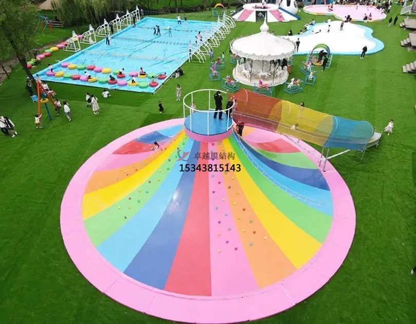 玩法:小朋友們拉著(zhù)繩子,沿著(zhù)火山坡往山頂攀爬,由于繩子是擺動(dòng)的,坡面也是非常軟,非??简炐∨笥训氖直哿α?,一般的小朋友需要在大人的協(xié)助下一起完成,更好的體現了親子互動(dòng)的效果。
