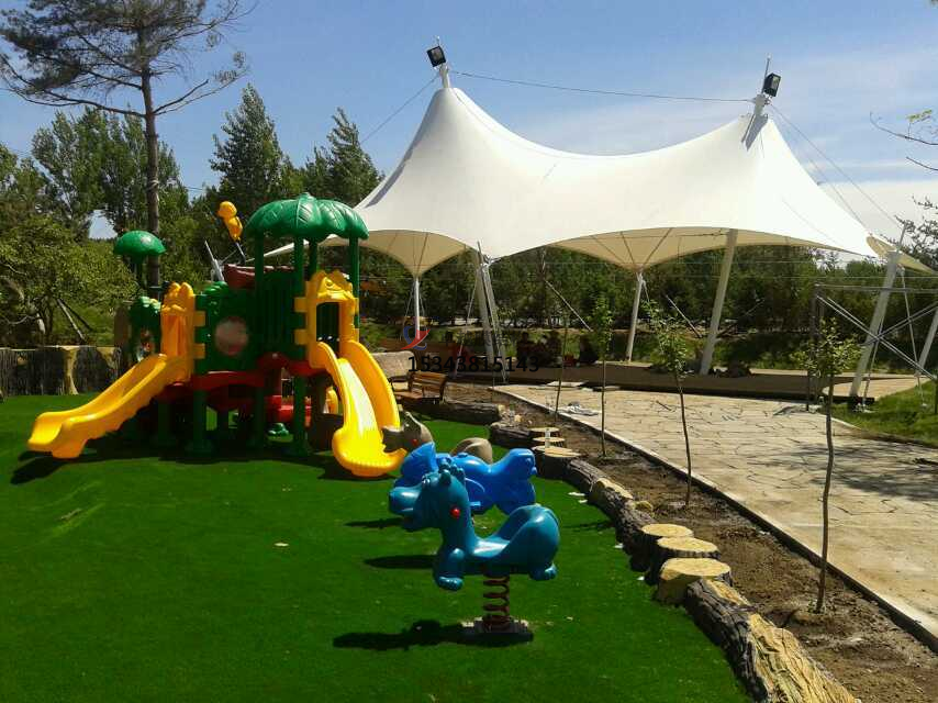 - 經(jīng)濟性:一般來(lái)說(shuō),游樂(lè )園/兒童樂(lè )園的雨篷跨度較大。在這方面,膜結構具有很大的優(yōu)勢,其造價(jià)僅為傳統遮陽(yáng)篷的一半,且膜結構可拆卸,移動(dòng)方便。