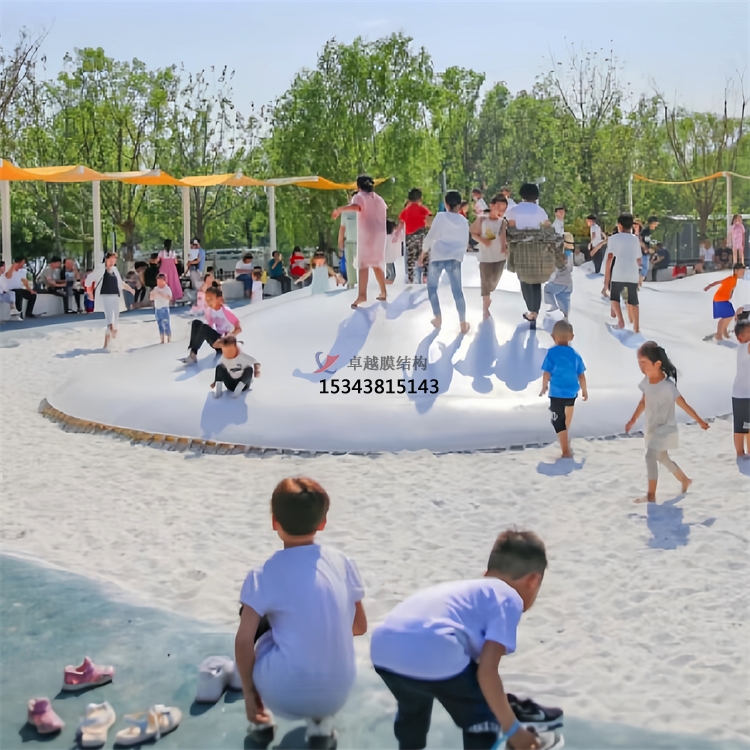 與傳統式蹦蹦床相比,卓越膜結構公司的蹦蹦云可根據使用需求自由設計彈跳面的弧度與形狀,實(shí)現多種造型和異形結構的設計,豐富的外觀(guān)造型帶來(lái)更強的美觀(guān)性和趣味性。