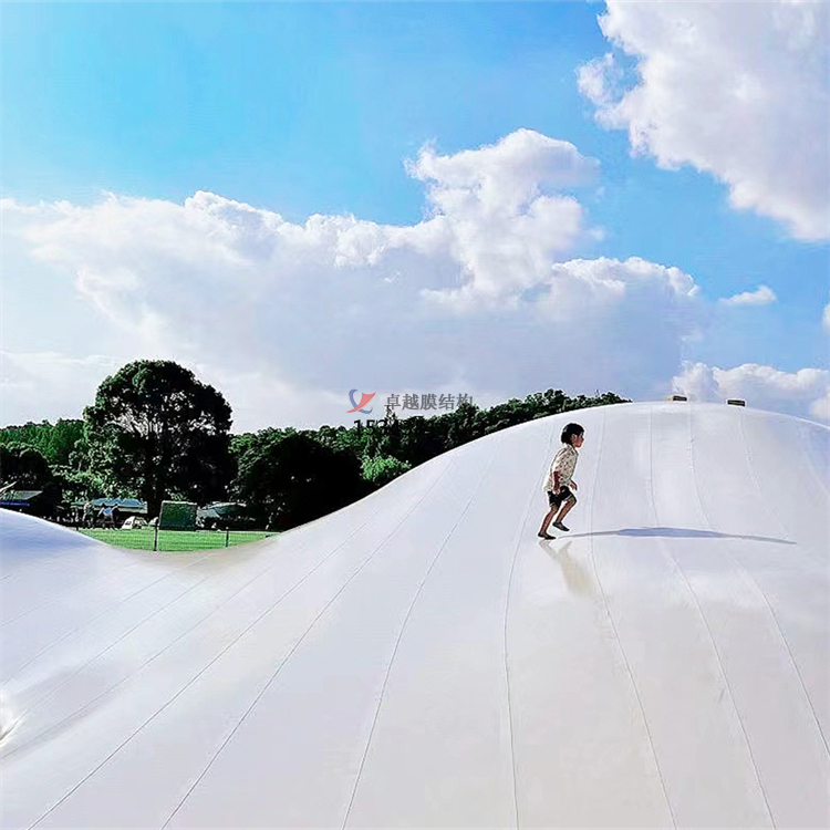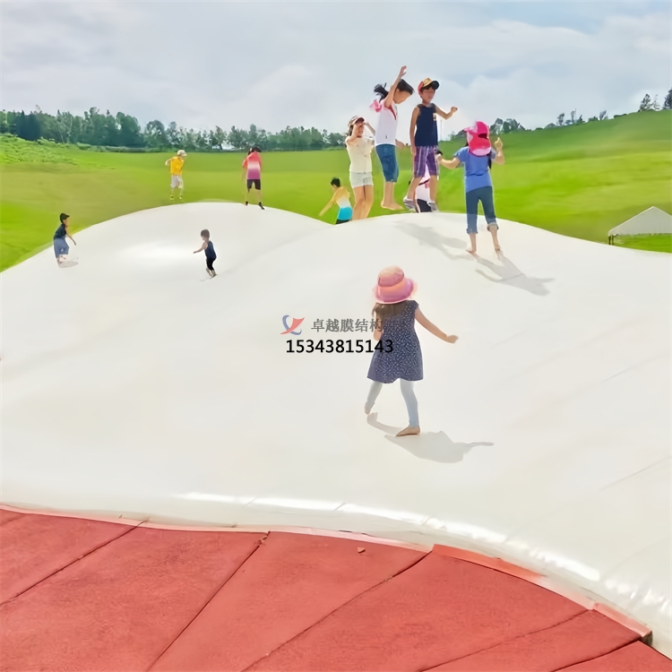 蹦蹦云是新型無(wú)動(dòng)力兒童互動(dòng)體驗設施,似朵朵白云、形象新穎;整體采用的膜結構拼接而成??杀?、可滑、可爬。適合很多年齡段兒童和成人使用。