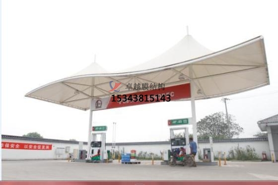 就拿加油站罩棚來(lái)說(shuō)吧,傳統的罩棚一般是用無(wú)數根(只是想說(shuō)數量大,別較真兒)鋼管組成的網(wǎng)架支撐起來(lái)的,沉重且易腐蝕,易褪色。膜結構加油站則大膽地走起了“減肥”路線(xiàn),省去了這些網(wǎng)架,采用型鋼結構,不僅輕便了,還延長(cháng)了使用壽命,而且檐面采用的膜結構復合材料,可保持10年不褪色。