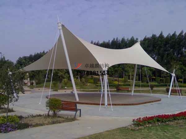 ?。?)PTFE膜材的更大特點(diǎn)是強度高,中等強度的PTFE 膜厚度僅0.8mm,但它的拉伸強度已達到鋼材的水平;而且彈性模量較低,有利于膜材形成復雜的曲面造型;