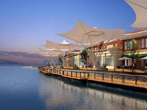 PTFE膜材指在極細的玻璃bai纖維(3μm)編織成的基布上涂duPTFE(聚四氟乙烯zhi)樹(shù)脂而形成的復合材料dao,PTFE建筑膜材是當今世界的主流膜結構建筑材料。PTFE膜材應用范圍已比較廣泛,包括各類(lèi)體育建筑、展覽建筑、機場(chǎng)建筑及設施、海濱娛樂(lè )休閑建筑及設