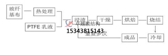 制作膜材的過(guò)程中,玻纖布需要進(jìn)行多次浸漬,而且要適當控制每次浸漬的樹(shù)脂量,過(guò)少會(huì )達不到產(chǎn)品的性能要求,過(guò)多則在燒結后容易出現龜裂現象。