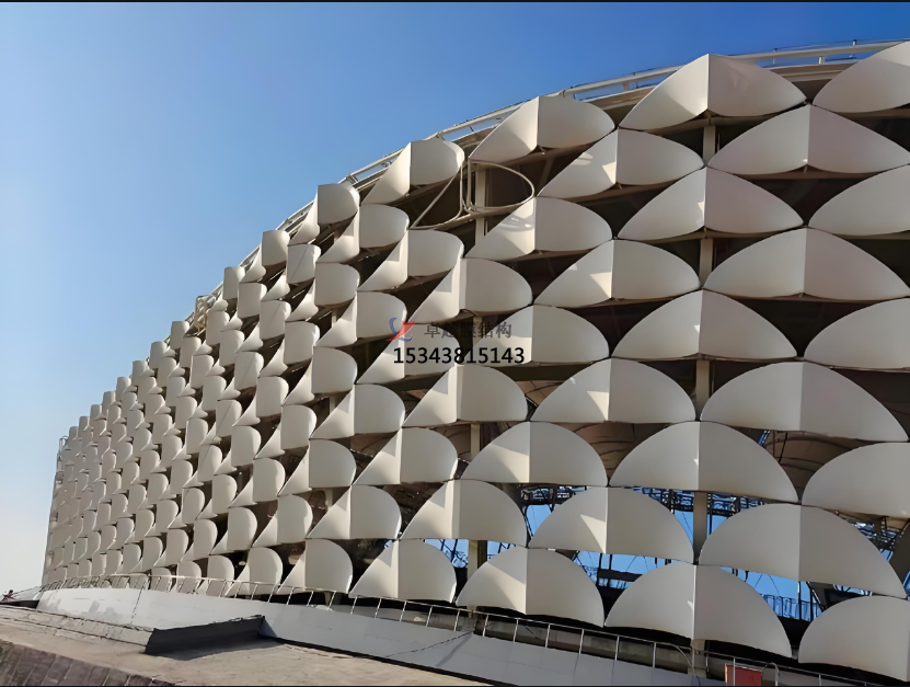 ?。撼1挥糜隗w育場(chǎng)館、展覽館、會(huì )議中心等大型公共建筑的屋頂和墻面。例如,北京奧運會(huì )的 “水立方”,其外立面使用了 ETFE 膜材(與 PTFE 網(wǎng)格覆膜有相似特性),而 PTFE 網(wǎng)格覆膜也可用于類(lèi)似建筑,能提供良好的采光和獨特的視覺(jué)效果,同時(shí)減輕建筑自重,實(shí)現大跨度的空間結構。