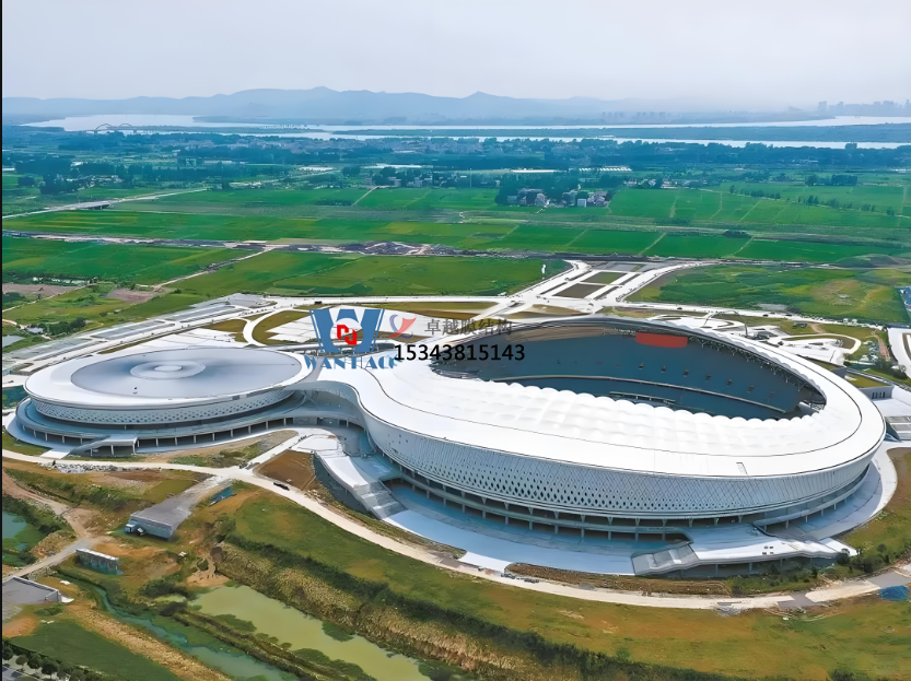 PTFE膜被廣泛應用于體育場(chǎng)館的屋頂設計。其輕質(zhì)高強的特性能夠實(shí)現大跨度無(wú)柱空間,為觀(guān)眾提供無(wú)遮擋的觀(guān)賽體驗。同時(shí),其透光性在滿(mǎn)足采光需求的同時(shí),能夠有效遮擋陽(yáng)光,從而降低室內能耗。