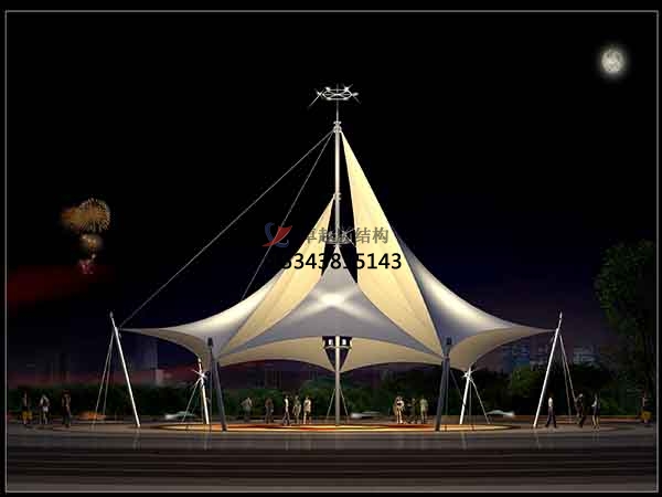 3.膜結構屋面安全性要求非常高,而PTFE膜結構材料更大的魅力在于它強度高、耐久性好、防火難燃、自潔性好,不受紫外線(xiàn)影響,使用壽命在25年以上。具有高透光率,透光率為13%, 對熱能反射率73%,PTFE膜熱吸收量很少。PTFE膜材讓膜結構屋面有成為現代化的永久性建筑。