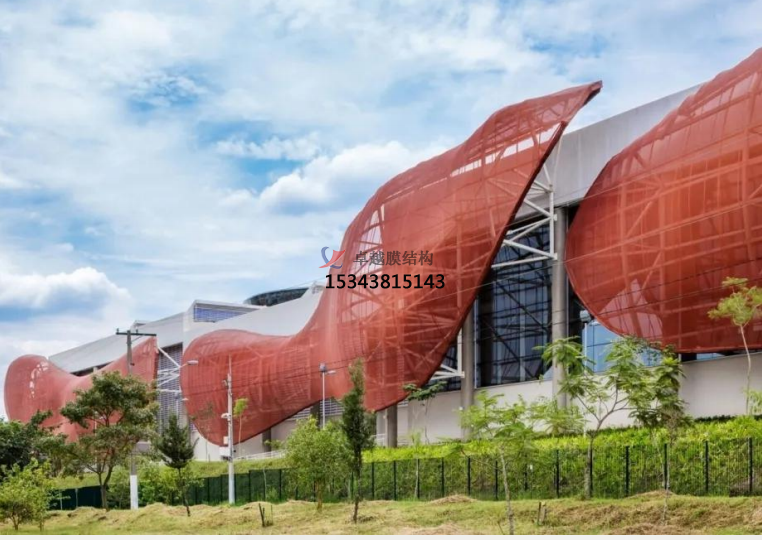 織物幕墻是應用耐候性的柔性膜材構建的織物框架系統或張拉系統。