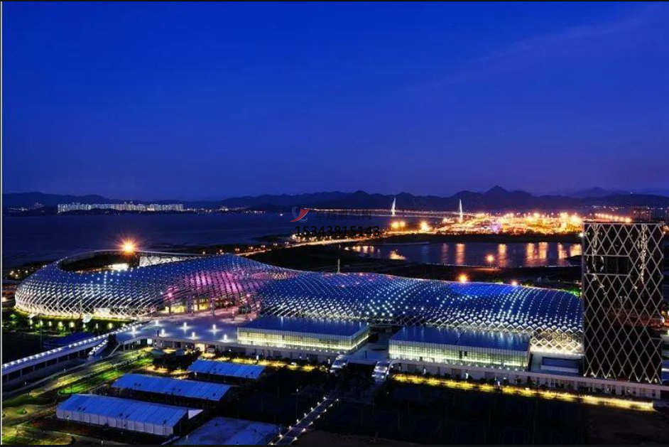 網(wǎng)格膜在外立面的應用越來(lái)越普遍,惠州市中心體育場(chǎng)是國內第一個(gè)立面大面積采用網(wǎng)格膜的體育場(chǎng),是舉辦2010年第十三屆省運會(huì )的主會(huì )場(chǎng),屋面采用了PTFE外膜,約3萬(wàn)多平米。立面采用了PTFE網(wǎng)格膜,約2萬(wàn)多平米,去營(yíng)造一種金屬質(zhì)感的折板效果。不僅作為外部的圍護結構,還豐富了整體的立面效果,扭轉單元與平面單元的結合,使得整個(gè)屋面更加富有動(dòng)感,而且網(wǎng)格膜作為L(cháng)ED光的載體。