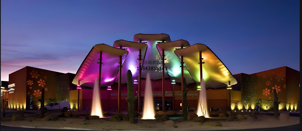 采光與通風(fēng):PVDF 膜材具有一定的透光性,設計時(shí)要充分利用這一特性,合理規劃采光區域,以滿(mǎn)足室內采光需求,減少人工照明能耗。同時(shí),結合自然通風(fēng)設計,通過(guò)設置通風(fēng)口、氣窗等方式,利用膜結構的空間形態(tài)引導氣流,改善室內空氣質(zhì)量和熱環(huán)境。