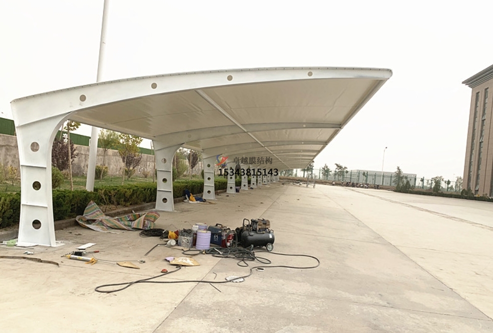 • 環(huán)保節能:膜結構材料通??梢曰厥绽?,符合綠色建筑的理念。同時(shí),雨棚的設計使得車(chē)棚內的照明需求較低,可以減少能耗。部分膜材料還具有高透光率和良好的熱反射性能,進(jìn)一步提高了雨棚的節能效果。