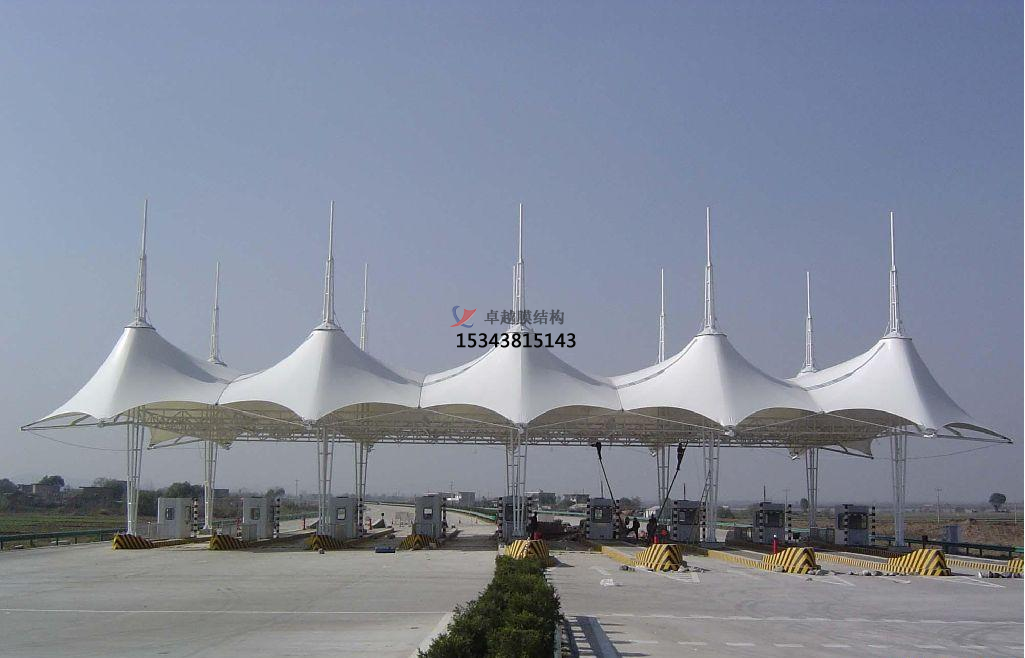 結構:收費站的膜結構需要具備穩定的結構,能夠承受風(fēng)雨等自然條件的影響。